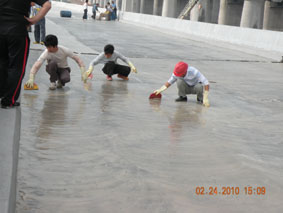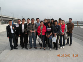 2010年2月24日,公司領(lǐng)導(dǎo)和業(yè)務(wù)員一起到廣珠輕軌工地現(xiàn)場(chǎng)參觀實(shí)習(xí)。 工人用專業(yè)設(shè)備處理基面 打底漆