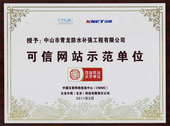 2010年10月29日,中國省級"可信網(wǎng)站示范工程"試點已在廣東啟動,首批"可信網(wǎng)站示范單位"也同期評出。國內(nèi)建筑防水、保溫、加固、GRC裝飾材料集大成者,國內(nèi)較大的EVB保溫砂漿生產(chǎn)商,高新技術企業(yè)——青龍化建(