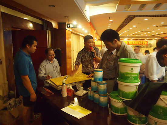 在近3個小時的推廣會中,廣西青龍中區(qū)域經(jīng)理黎世鷹以廣西玉林的建材市場的現(xiàn)狀為例,為大家解析了建材行業(yè)未來的發(fā)展前景,并就青龍建材公司“一個品牌,四門生意”的招商加盟政策做了詳細的介紹。青龍集團防水保溫技術(shù)總工程師徐新生則深入地剖析了青龍牌新的型反應交叉膜自粘防水卷材、防水涂料(青龍牌防水密封涂料)、EVB高強保溫隔熱板等產(chǎn)品的特點及應用,幫助與會者更好地了解青龍建材的主推產(chǎn)品。而廣西青龍GRC技術(shù)工程師李運旺為參會者進行講解GRC歐式構(gòu)件生產(chǎn)、技術(shù)、認識誤區(qū)、前景等內(nèi)容。此次技術(shù)交流會全面、深刻,使得參會者對青龍企業(yè),招商計劃,產(chǎn)品技術(shù)等問題有了進一步的了解,也受到了在場人員的贊賞。