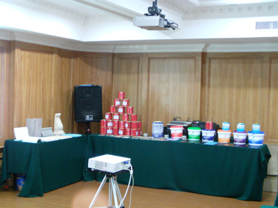 青龍建材集團北京區(qū)域經理朱正彬以膠東半島的建材市場的現(xiàn)狀為例,為大家解析了建材行業(yè)未來的發(fā)展前景,并就青龍建材公司“一個品牌,四門生意”的招商加盟政策做了詳細的介紹。福建大區(qū)域經理周炳陽工程師則深入地剖析了青龍牌防水涂料、新的型反應交叉膜自粘卷材、EVB高強保溫隔熱板、GRC歐式構件等產品的特點及應用,幫助與會者更好地了解青龍建材的主推產品。