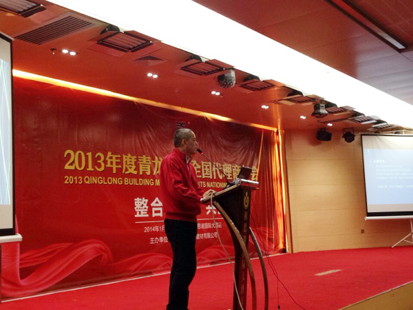 隨后外籍防水專家吉姆,青龍集團工程師羅兆學(xué)先生,外省營銷總監(jiān)王定中先生,網(wǎng)絡(luò)營銷經(jīng)理賀金龍先生分別上臺演講,與廣大代理商交流防水技術(shù),網(wǎng)絡(luò)營銷及2013年銷售,并展望充滿期待的2014年。