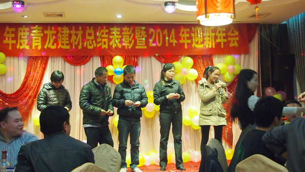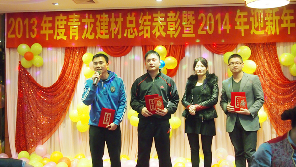 晚宴上,青龍廣西分公司韋流武先生代表集團(tuán)董事長宋總致晚宴開幕辭并送上新年祝福。韋經(jīng)理總結(jié)了2013年青龍廣西化學(xué)建材的發(fā)展歷程,肯定了2013年所取得的成績,并對2014年寄予了美好展望。之后對2013年青龍廣西化學(xué)建材表現(xiàn)優(yōu)異的員工進(jìn)行表彰,鼓勵大家向他們學(xué)習(xí),繼續(xù)為生產(chǎn)中國較好的防水材料而奮斗。