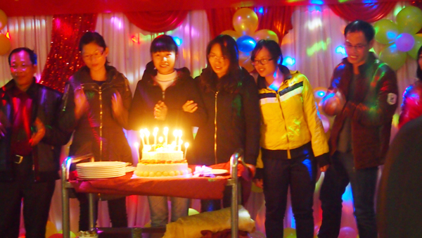 待所有活動和敬酒之后,廣西分公司還為1月份生日的員工舉行了盛大的生日慶?;顒樱蠹乙黄鸪鹕崭?,吃蛋糕,享晚宴,度過了一個溫馨愉快的晚宴。而且大家聚在一起交流,可以促進(jìn)彼此之間的友誼,加強(qiáng)公司團(tuán)隊的凝聚力,在此,再此祝這位同事生日快樂!