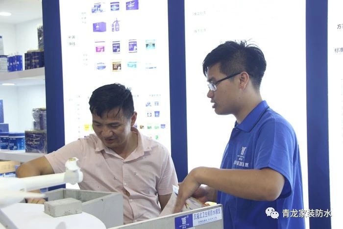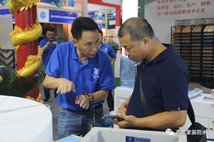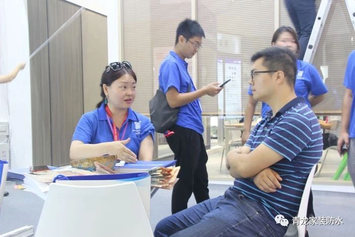 ▲青龍工作人員為客戶介紹青龍產(chǎn)品及招商政策