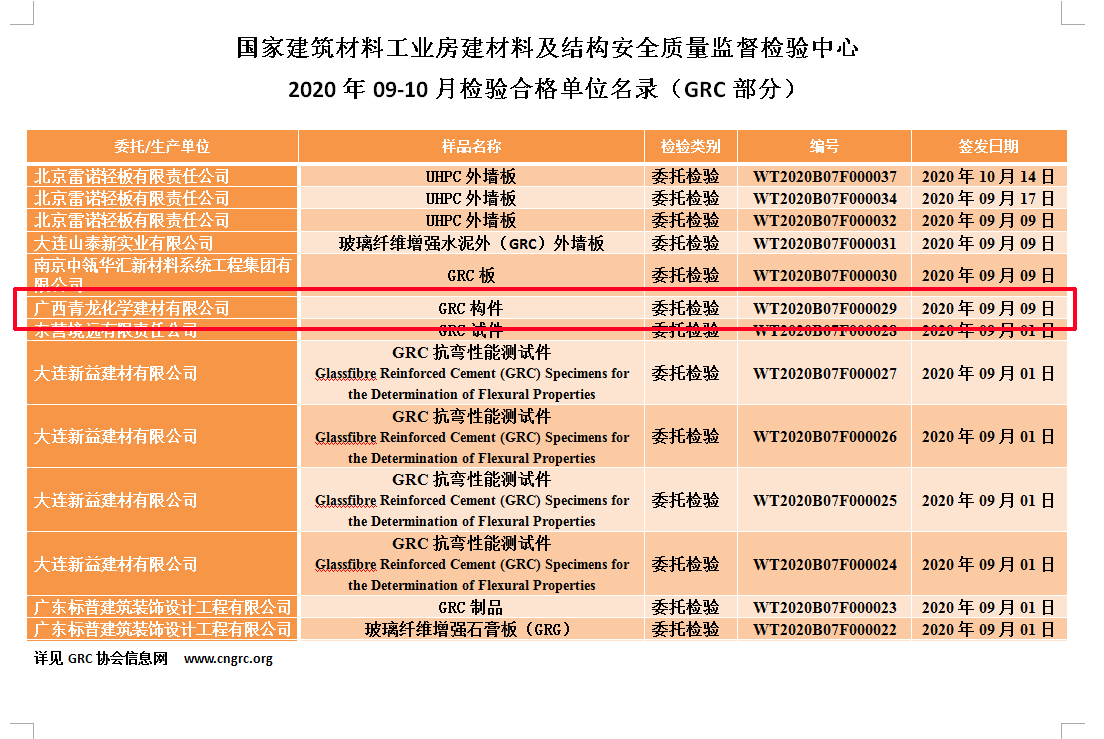 此次我司GRC構(gòu)件成功通過國家質(zhì)量監(jiān)督檢驗(yàn)中心檢測,是業(yè)界及國家對(duì)我司技術(shù)、管理、質(zhì)量提升與創(chuàng)新的充分肯定;青龍產(chǎn)品質(zhì)量是杠杠滴!23年的老品牌,放心的好品牌!
