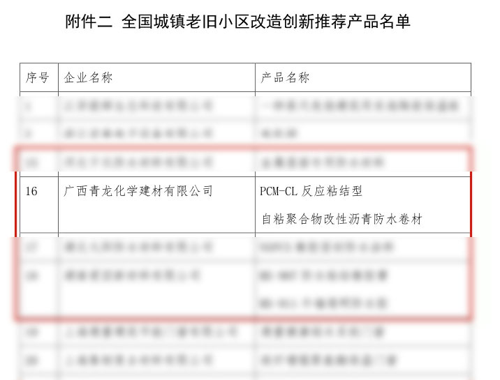 近日,由中國(guó)建筑節(jié)能協(xié)會(huì)綠色社區(qū)專業(yè)委員會(huì)主辦,全國(guó)城鎮(zhèn)老舊小區(qū)改造創(chuàng)新推薦產(chǎn)品、技術(shù)申報(bào)企業(yè)材料評(píng)審會(huì)圓滿結(jié)束,在公開、公平、公正的原則下,青龍公司自主研發(fā)生產(chǎn)的PCM-CL反應(yīng)粘結(jié)型自粘聚合物改性瀝青防水卷材成功入選全國(guó)城鎮(zhèn)老舊小區(qū)改造創(chuàng)新產(chǎn)品推薦名單。