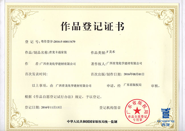 該證書的獲得,是青龍公司在知識版權工作上的又一個里程碑,它意味著青龍公司在具有獨立知識版權的防水行業(yè)得到了國家權威的認可和充分的肯定。