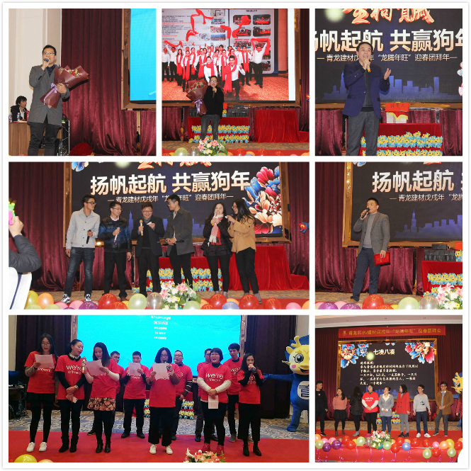 2018年2月7日,青龍建材中山公司2017年年終總結(jié)表彰大會及2018迎新年會在中山維出納國際酒店隆重舉行,青龍董事長宋敦清、營銷總監(jiān)賀金龍、招商總監(jiān)周炳陽、家裝事業(yè)部總經(jīng)理于超軍、質(zhì)量總監(jiān)張科、中山工廠廠長劉文學(xué)、方文軍以及青龍中山公司、港口工廠、三角工廠全體員工參加了盛會。晚會還現(xiàn)場連線了青龍海南環(huán)球100GRC工廠和馬來西亞森林城市防水工地。晚會繼往開來,精彩紛呈,其樂融融,取得了圓滿的成功!