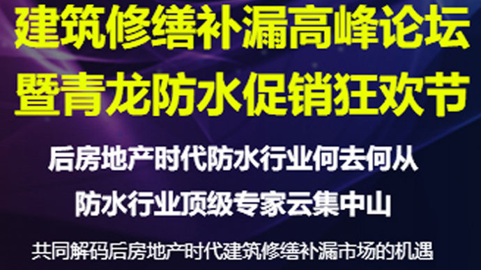 引燃2018年新春防水行業(yè)盛會,青龍防水誠邀您3月15日相約中山建筑防水工程修繕補漏高峰論壇。后房地產(chǎn)時代防水行業(yè)何去何從,建筑防水工程修繕補漏行業(yè)專家云集中山,與您共同解碼后房地產(chǎn)時代建筑修繕補漏市場機遇,青龍愿與您一同贏得市場財富機會。