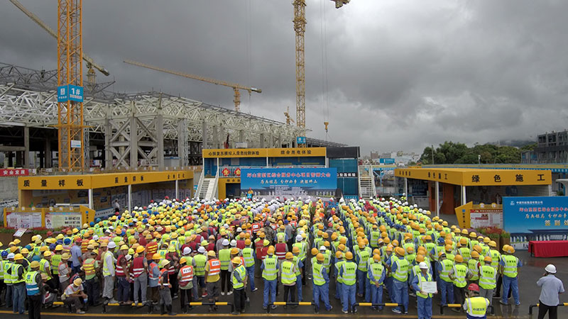 "分秒必爭(zhēng),決勝坪山",2018年8月10日早上9點(diǎn),深圳坪山高新區(qū)綜合服務(wù)中心項(xiàng)目誓師大會(huì)現(xiàn)場(chǎng),宣誓聲異口同聲、響徹云霄,似乎為即將成為坪山新地標(biāo)而摩拳擦掌。由青龍公司GRC團(tuán)隊(duì)等13個(gè)承建單位組成的1000多人方陣,堅(jiān)定表達(dá)了圓滿完成目標(biāo)的信心和決心。