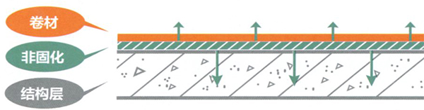 非固化與卷材的復(fù)合做法,主要是將基層進(jìn)行處理,除去水泥浮皮,露出里面的基層;其次,在基層表面進(jìn)行非固化防水涂料的噴涂或者涂膜施工,厚度按照設(shè)計(jì)要求,一般在1.5mm-2mm之間;之后進(jìn)行卷材的鋪粘,并用非固化進(jìn)行搭接處的粘結(jié)。基本上,所有的關(guān)鍵點(diǎn)在于非固化防水涂料的施工,分涂抹和噴涂施工兩種方法,可利用機(jī)器進(jìn)行施工。