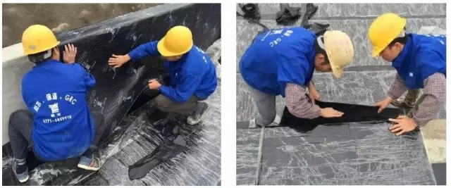 5.防水施工重要搭接、接縫處,2至3名施工工人配合作業(yè),保證 接縫處平整,粘合緊密。