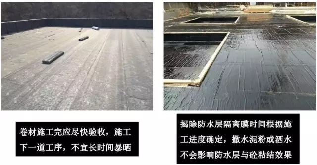 2、盡管做法二在防水層施工完完成后續(xù)施工存在破壞防水層或不粘的可能,但該做法能省卻找平及保護(hù)層費用,節(jié)省下來1/4的費用可用作預(yù)鋪反粘措施費和修補費。由于該做法不竄水,漏水概率仍只有50% , 卷材破損與結(jié)構(gòu)缺陷同時出現(xiàn)的概率低。因此,與傳統(tǒng)方法相比,兩害相衡取其輕,仍推薦完全意義的預(yù)鋪反粘工藝。
