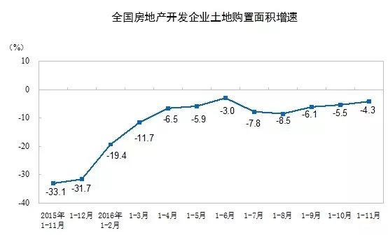 1-11月份,房地產開發(fā)企業(yè)土地購置面積19046萬平方米,同比下降4.3%,土地成交價款7777億元,增長21.4%。