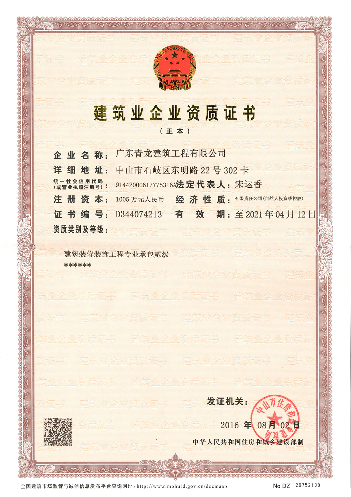 建筑裝修裝飾工程專(zhuān)業(yè)承包資質(zhì)對(duì)企業(yè)資產(chǎn)、企業(yè)主要人員、企業(yè)工程業(yè)績(jī)都有著非常高的要求,建筑裝修裝飾工程專(zhuān)業(yè)承包貳級(jí)資質(zhì)的成功取得,是對(duì)青龍實(shí)力的認(rèn)可,對(duì)于進(jìn)一步擴(kuò)大企業(yè)的品牌影響力、提升企業(yè)競(jìng)爭(zhēng)力有著重大意義。