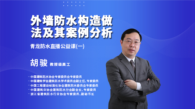胡駿教授是資深的防水行業(yè)知名專(zhuān)家,他不僅擁有扎實(shí)的專(zhuān)業(yè)能力,并且都親身參與過(guò)多起國(guó)內(nèi)重點(diǎn)防水工程,實(shí)戰(zhàn)能力過(guò)硬。今晚他將為大家?guī)?lái)"外墻防水構(gòu)造做法及其案例分析"的課題,從外墻構(gòu)造形式、外墻防水構(gòu)造做法等最基本的防水知識(shí)入手,幫助大家詳細(xì)了解外墻防水原理、使用材料和施工細(xì)節(jié),最后以具體的案例分析介紹其中的成功得失,幫助我們?cè)谝院蟮姆浪a(bǔ)漏工程中規(guī)避那些不規(guī)范的做法。